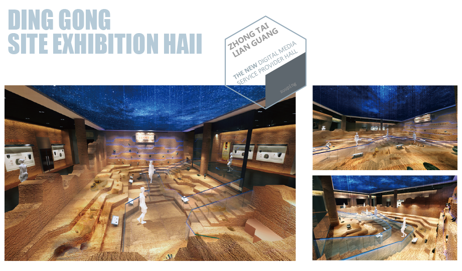The discovery of Ding Gong's Inscription on Pottery pushes forward to the history of Chinese writing by more than 800 years. Between one point and one stroke, it foreshadowed the continuous spread of the five-thousand-year Chinese civilization. Using the ceramic carving symbols as design elements to display the decoration of the space has the punchline effect and can impress the audience; The application of interactive multimedia development guides the audience to experience the charm of prehistoric civilization independently.